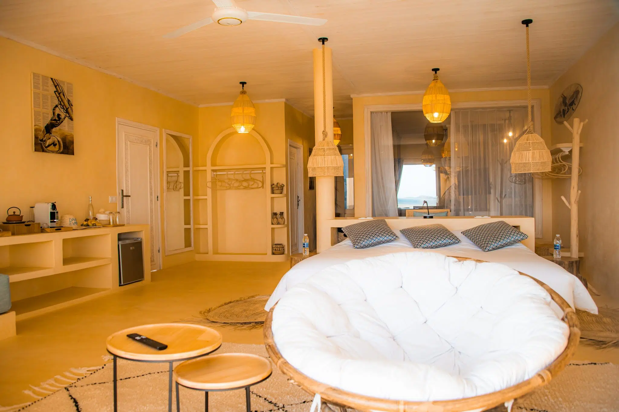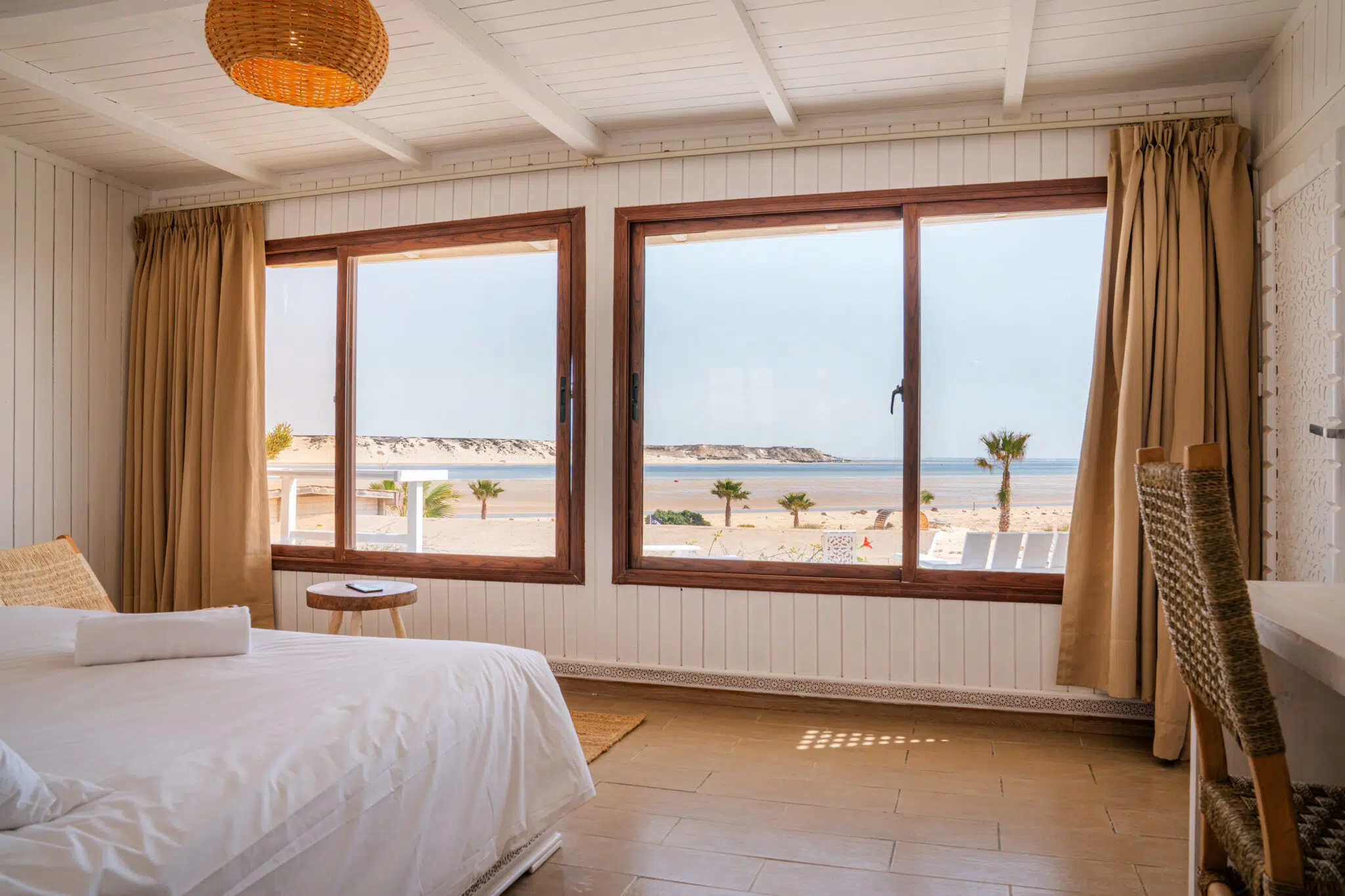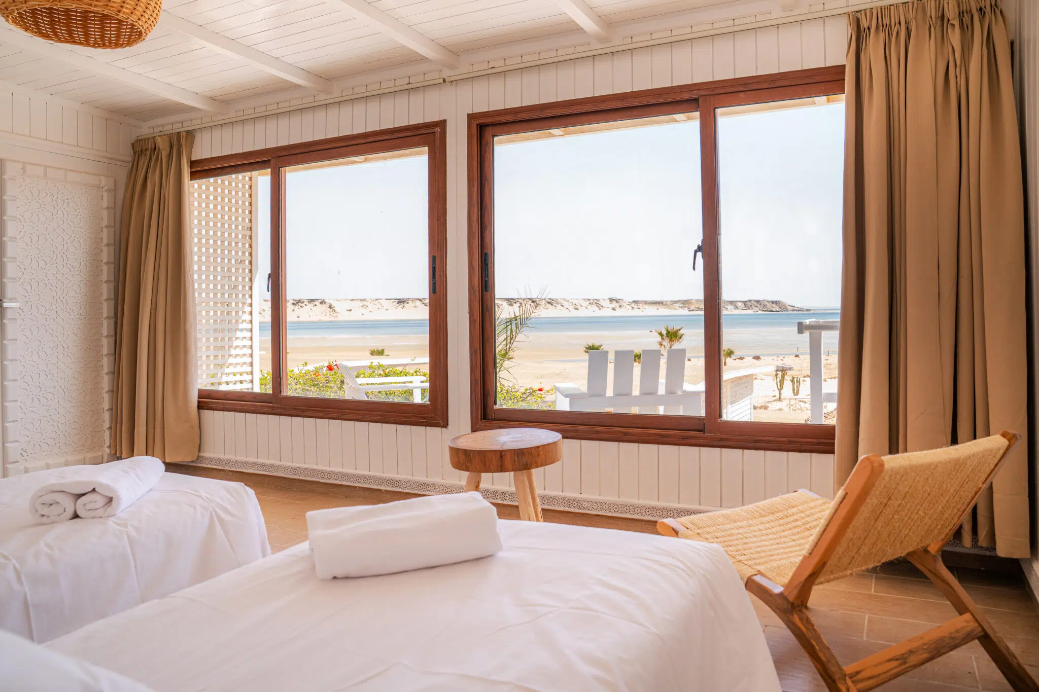 It can accommodate up to 2 persons in double bed or twin bed. Enjoy the calm of the desert and the beauty of the lagoon right in front of your accommodation.