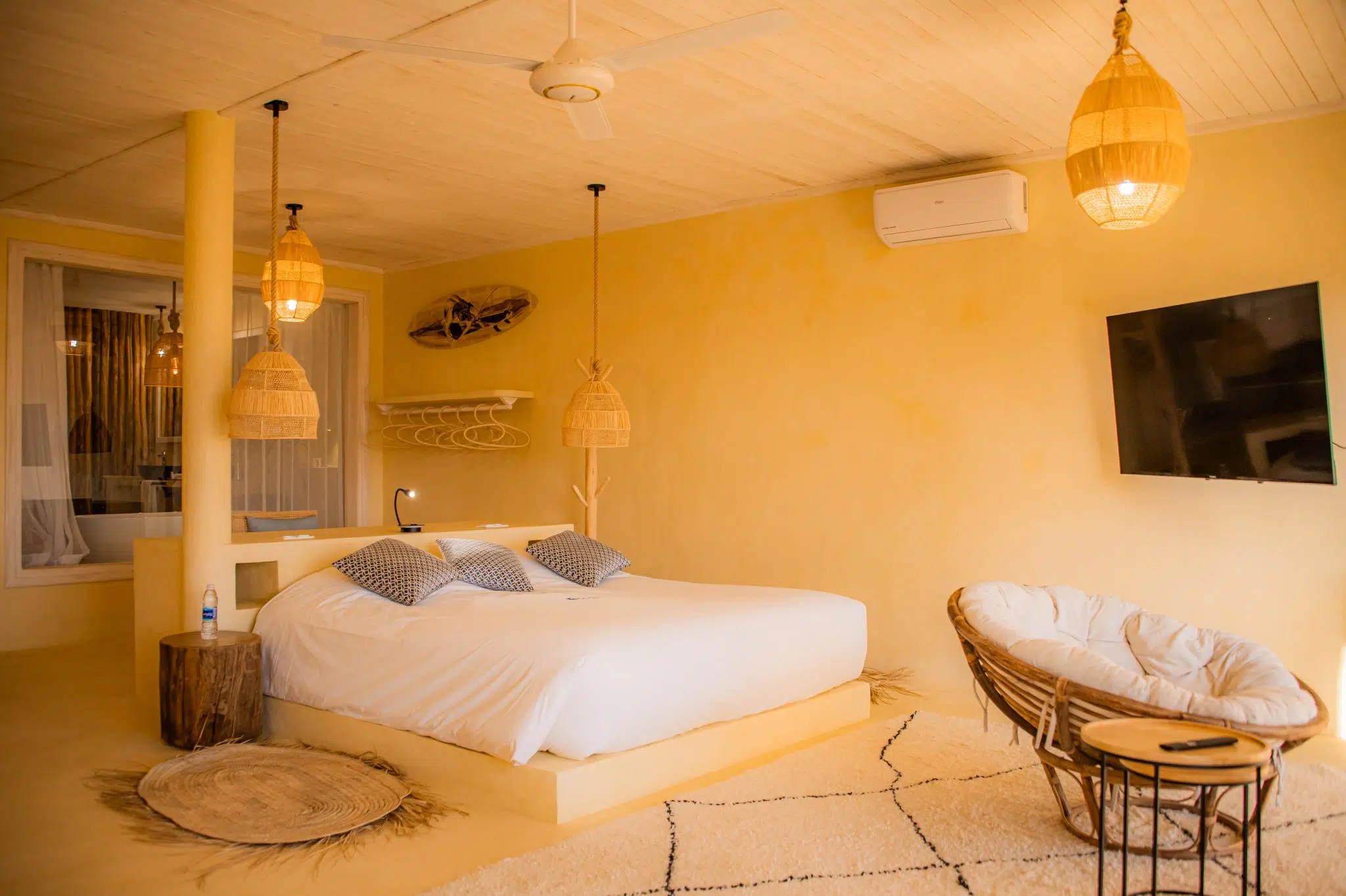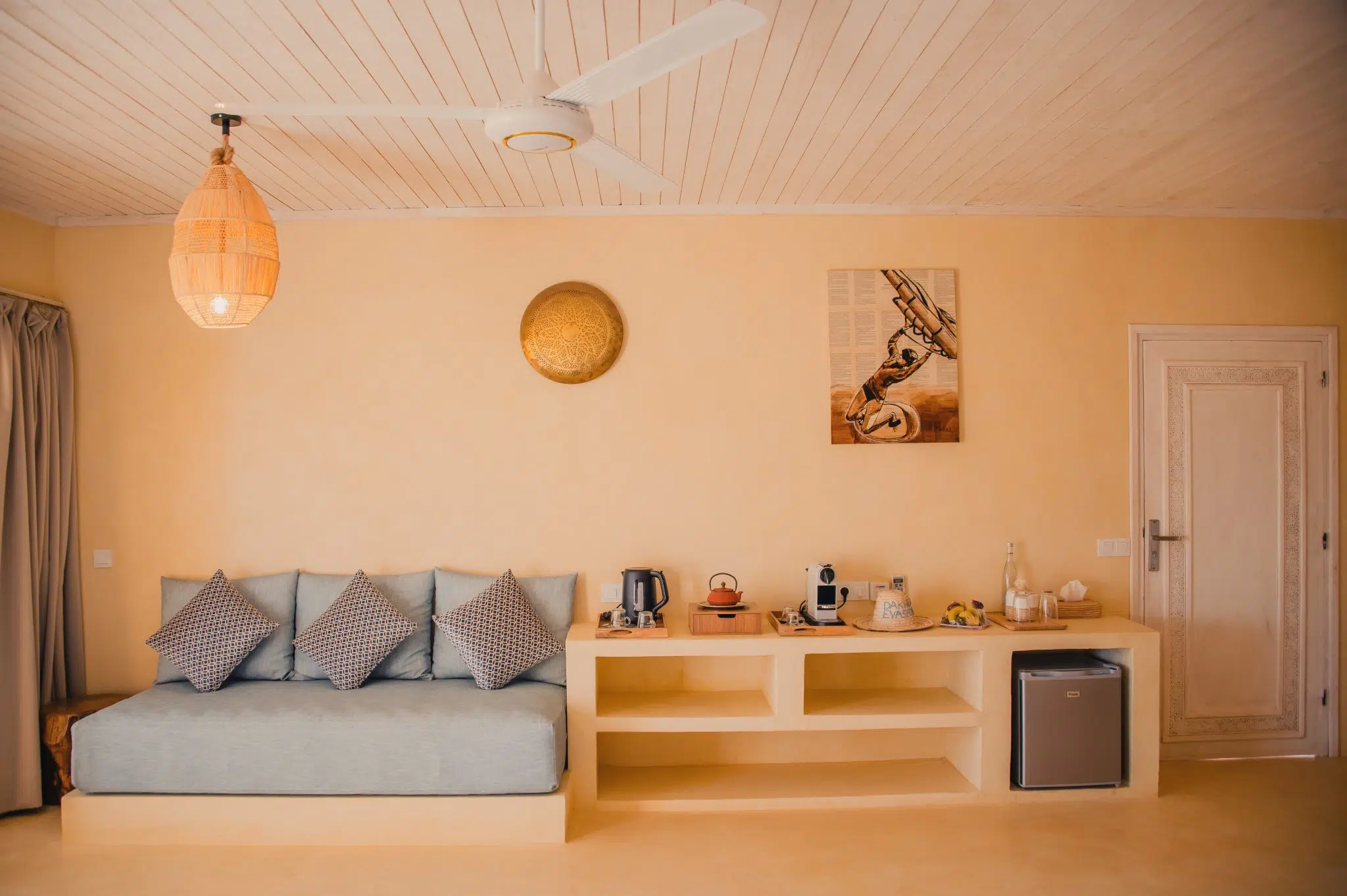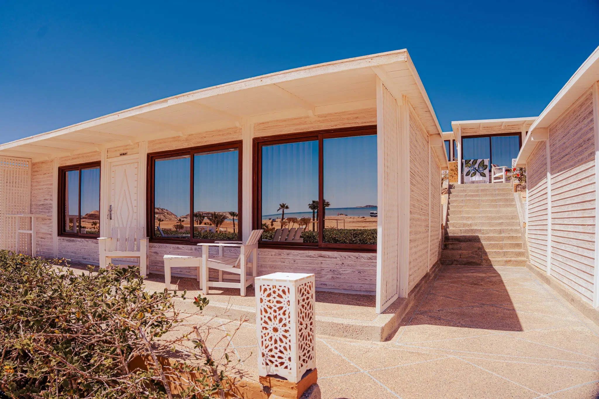 It can accommodate up to 2 persons in double bed or twin bed. Enjoy the calm of the desert and the beauty of the lagoon right in front of your accommodation.