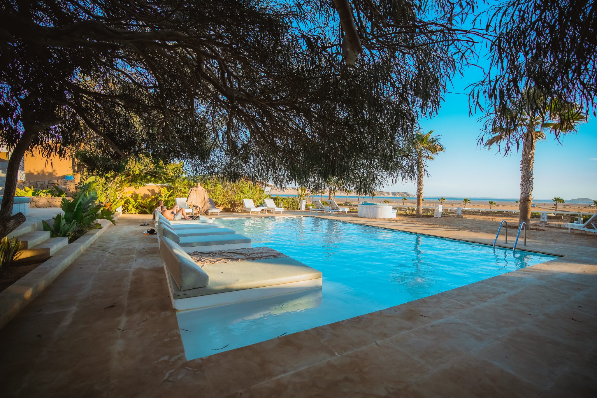 Chaque bungalow est pensé pour le repos après le sport. Le calme du désert garantit des nuits reposantes lors de votre séjour au Maroc. C’est l’hébergement parfait pour vivre au rythme de la lagune et profiter de la beauté de l’eau chaque matin. La proximité immédiate de la lagune depuis votre terrasse rend l’expérience unique et facilite votre accès à l’eau.