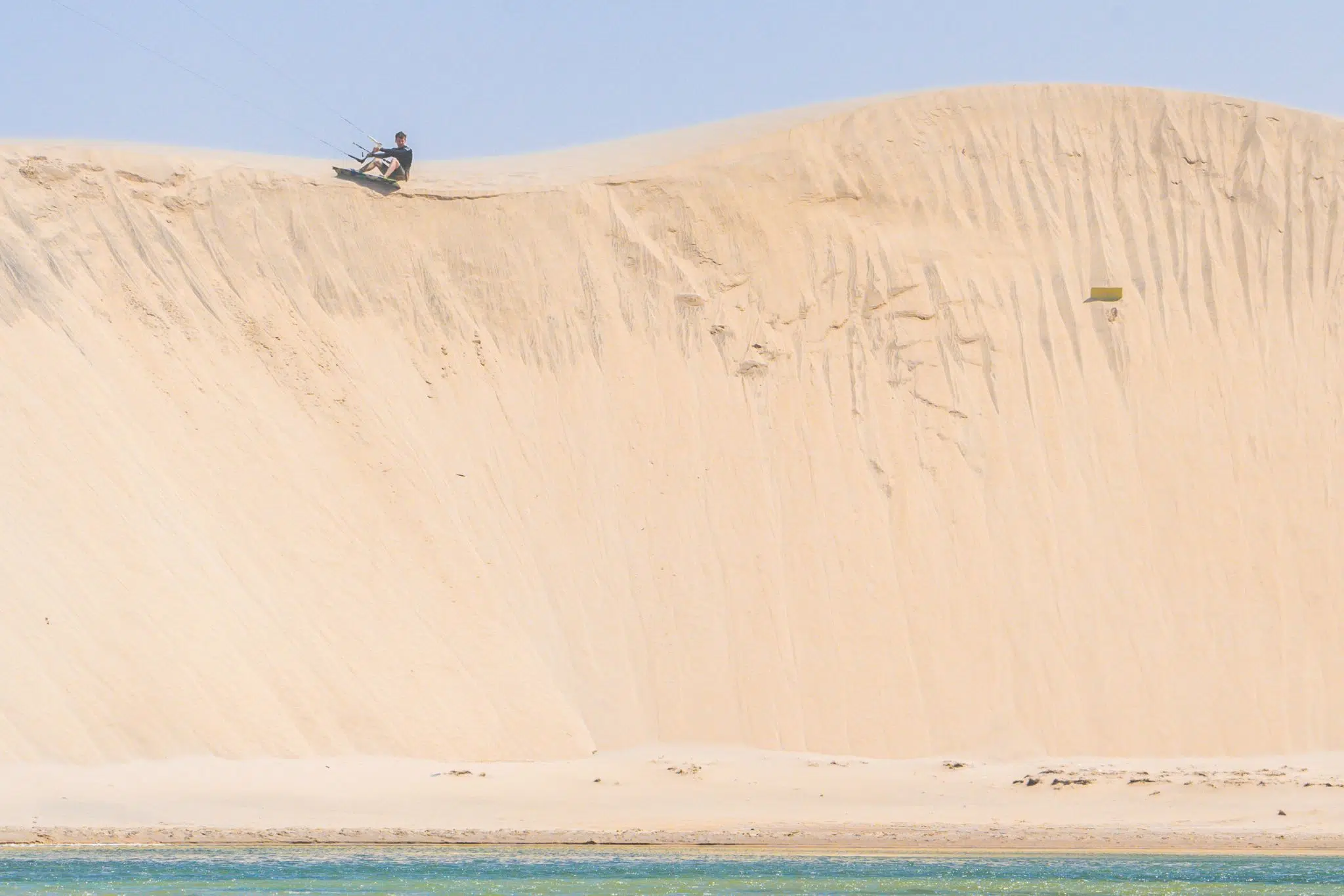 C’est l’image carte postale de Dakhla. La célèbre Dune Blanche est un phénomène naturel épatant : une immense dune de sable blanc dressée au milieu du lagon, possédant son propre petit lac intérieur. C’est un spot incontournable pour le kitesurf, mais aussi un lieu de prédilection pour les photographes et les flamants roses. En fonction des conditions de vent, nous organisons de magnifiques Downwind au départ de la lagune jusqu’à la Dune. C’est une expérience de glisse « safari » à faire sans modération lors de votre voyage.